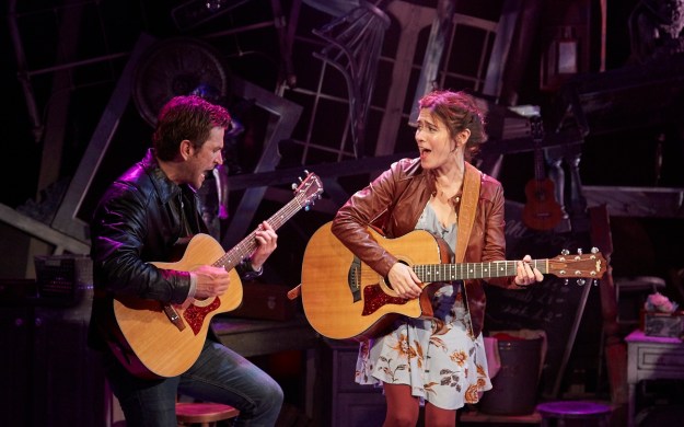 A good deal of the credit for how well this play works must go to director Tracy Brigden, who has elicited terrific performances from her two actors and who also keeps the show consistently entertaining and surprising. The director also works wonderfully with her designers, particularly Narelle Sissons, who is responsible for both the scenic and costume design. “Midsummer” is performed on a relatively simple stage, with a wildly abstract and artistic background that seems to suit this story perfectly. There is also expert lighting design by Andrew Ostrowski and Elizabeth Atkinson’s sound design is crystal clear, especially in the moments when the two performers are playing acoustic guitars and singing.