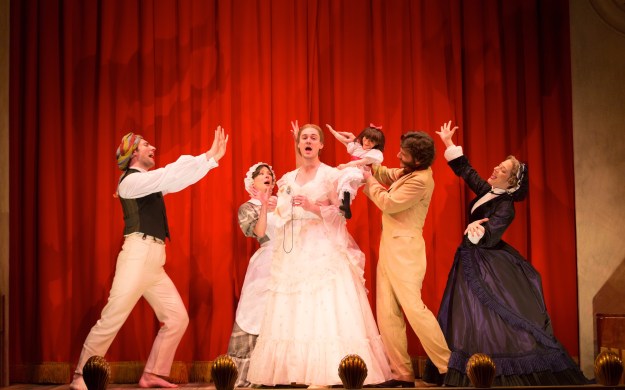 As the mother character of Betty, Tom Pecinka is positively translucent and makes for an ideal heroine. As her husband, Clive, Mark H. Dold is suitably starchy and he is matched by the fine Chandler Williams as adventurer Harry Bagley. Emily Gunyou Halaas does well as Betty’s stern mother, Maud and William John Austin is quite good as the servant, Joshua. Still, it is Mia Dillon, a woman playing a male child, who shines the most. It should be mentioned that, in addition to the gender-bending in the play, some of the characters are sexually fluid, as well, leading to all sorts of complications.
