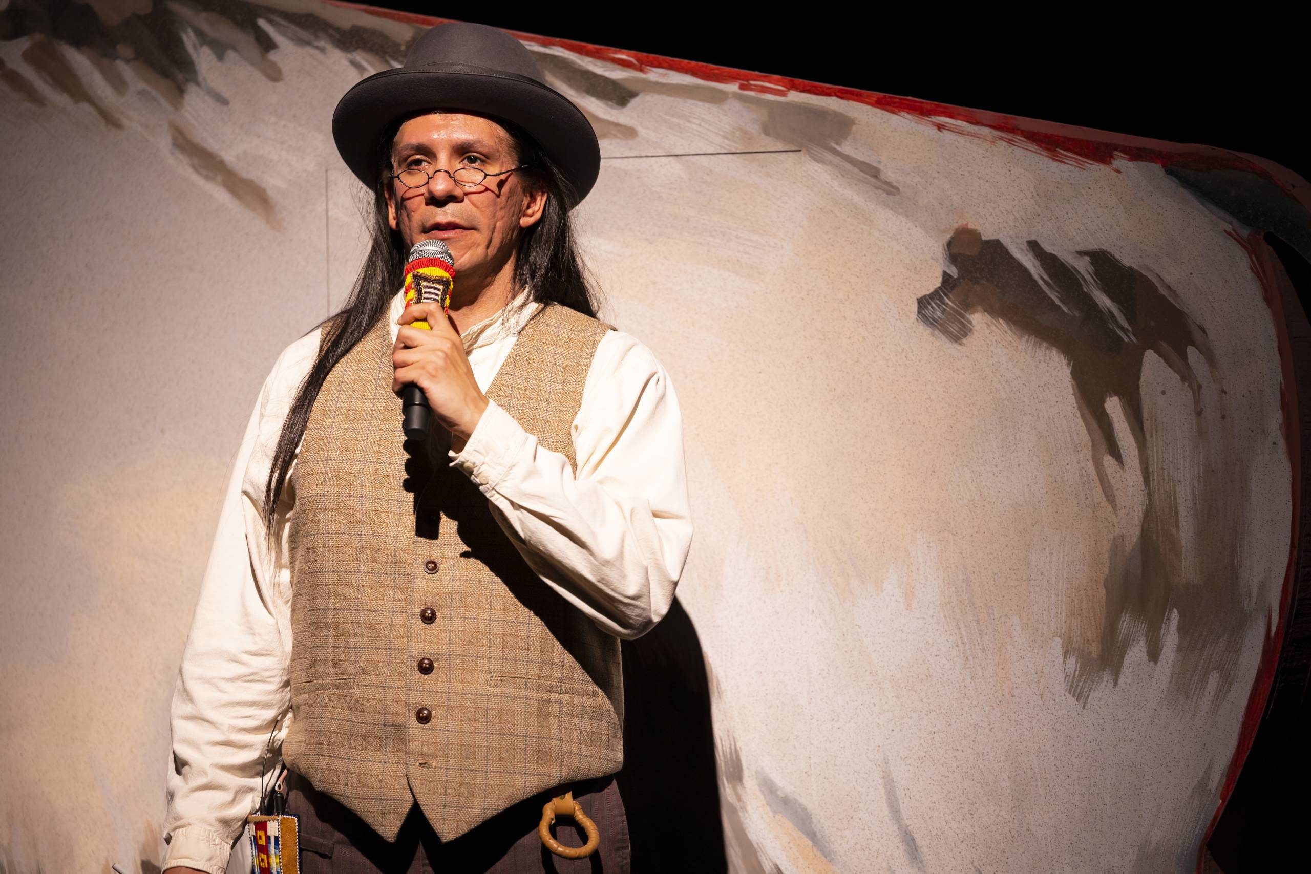 One is best to concentrate on the company of actors, all of whom do everything they can to enliven the proceedings. As mentioned, Justin Gauthier certainly makes a strong impression, but everyone in the show can handle both comic and serious moments equally well. Rather late in the second act, Wotko Long, as Isiah, and Sheila Tousey, as his wife Irma, make a welcome couple. Similarly, Derek Garza is good as a younger version of Isiah and Shyla Lefner is his equal as the younger Irma. Still, after sitting through this overlong show, even their contributions start to peter out. The other members of the cast of “Between Two Knees” include Edward Astor Chin, Rachel Crowl, and Shaun Taylor-Corbett, all of whom do their best to make the show as buoyant as possible.