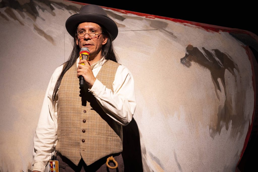 This is most unfortunate because, at the beginning of the show, this play promises to be a subversive delight. As the character of Larry, Justin Gauthier really stands out and he is the primary focus at the start, finding the precise balance between comedy and drama. And “Between Two Knees” can be funny, but, as the show continues on, one’s interest starts to wane. This play might have worked as a short comedy skit, but the production drags on to over two and half hours and not even the valiant efforts of everyone involved can truly help it. “Between Two Knees” attempts to right history for Native Americans once and for all, but the sheer length of the show ultimately undermines this effort.