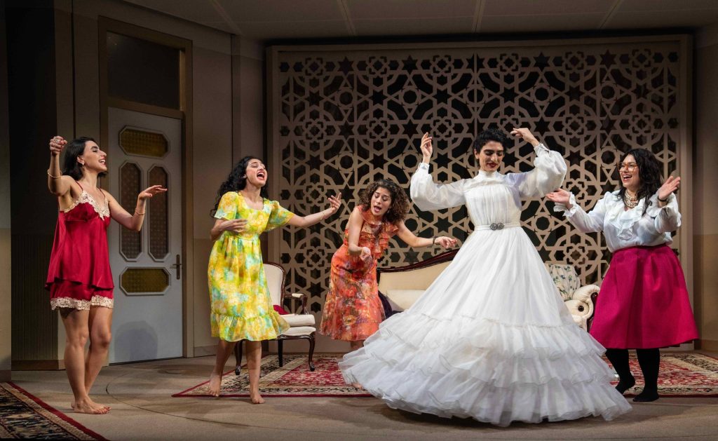 The first scene occurs in 1978, right before the wedding of Salme (luminously performed by Bahar Beihaghi), and the interaction and dialogue between the five young women in the opening scene is raunchy and uproarious and engages the audience almost immediately. These are a group of very good friends, though there also exists a kind of hierarchy amongst them. Other than Salme onstage, there is Shideh (the delightful Shadee Vossoughi), perhaps the most sensible girl in the group; Rana (portrayed fantastically by Vaneh Assadourian), the kind of queen bee among the friends; and Zari (the terrific Ava Lalezarzadeh), who practically bursts with mischief.