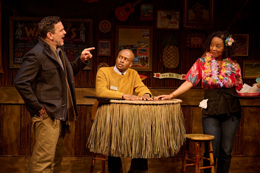 Kenneth initially works at a bookstore, but, when the owner decides to close the store, Kenneth is faced with a career change, which turns out to be him becoming a teller at the Primary Trust Bank. Helping him along are Chavira, as the boss at the bank, and Ward as Kenneth’s favorite waitress and friend, Corrina, at the bar. As mentioned, both of these performers play multiple roles and they are terrific in delineating the separate characters, just with a change of dress (the ideal costumes are designed by Danielle Preston) and way of talking.