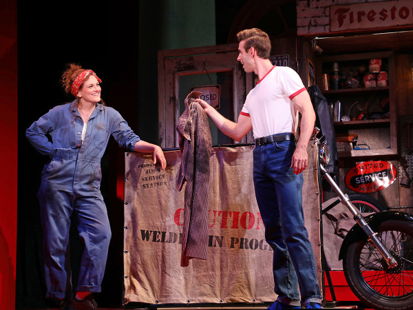 The setting of “All Shook Up” is an unnamed town in the 1950s and it is the arrival of the Elvis-like character Chad (played by the unbeatable and good-looking Ryan Mac) which quite literally shakes the entire town up. And, except for one major couple in the story, the mode of this musical is unrequited love, with the song, “One Night With You,” sung numerous times throughout the show at the exact moment when one character immediately gets attracted to another character. Amongst the folks in town are Natalie (the delectable and winning Kerstin Anderson), who is something of a grease monkey and she falls hard for Chad right on sight.